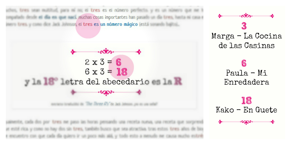 pero antes de pasar a la receta, y como lo había prometido en el post anterior, ahora les cuento de qué iba la "sorpresa" para celebrar mi cumpleblog. ya les había adelantado que habría tres regalitos. y fueron asignados a las personas cuyo comentario coincidió con los números 3, 6 y 18 (tres números que aparecían bien marcados en el post). las ganadoras, mis bellas Marga, Paula y Kako, recibirán en breve sus paquetitos, con un regalo elegido especialmente para ellas. espero haber acertado y que los disfruten mucho.